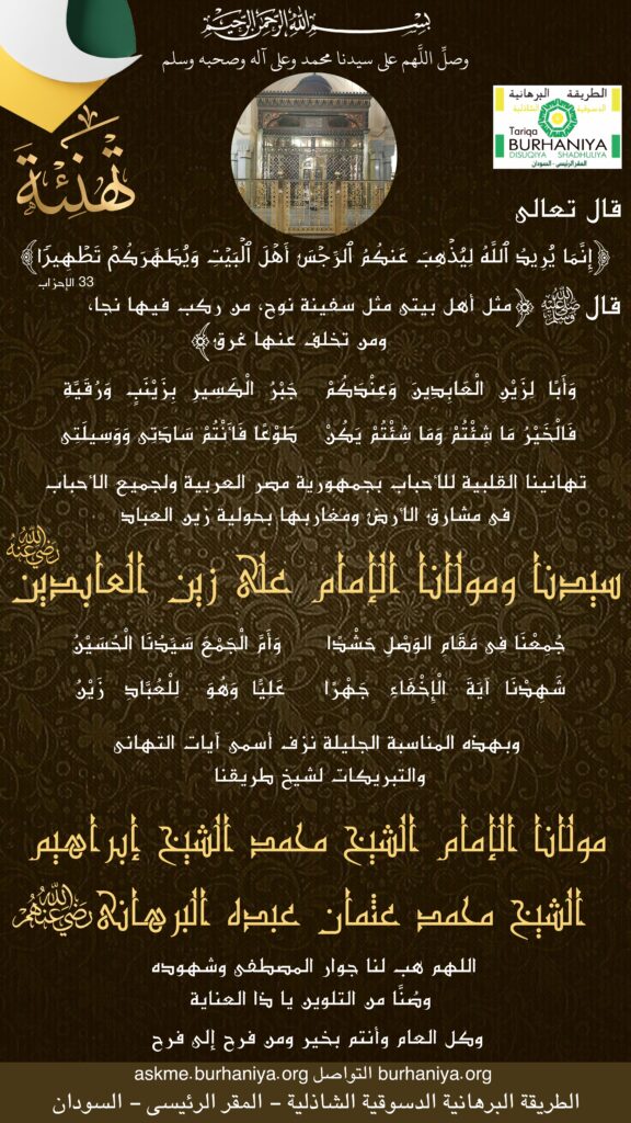 تهنئة حولية سيدنا ومولانا الإمام على زين العابدين رضى الله عنه