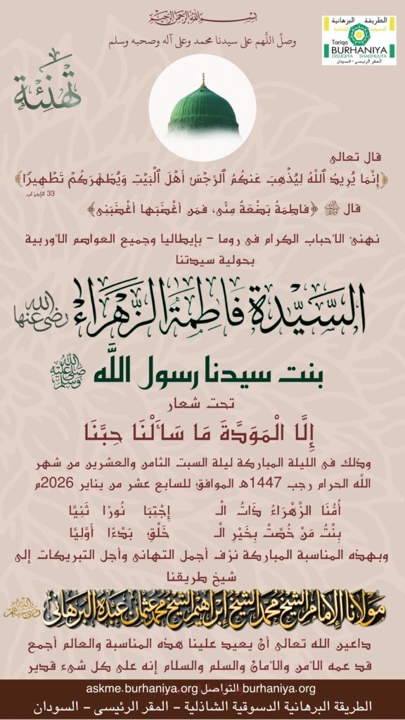 تهنئة حولية السيدة فاطمة الزهراء رضى الله عنها فى روما – بإيطاليا وجميع العواصم الأوربية